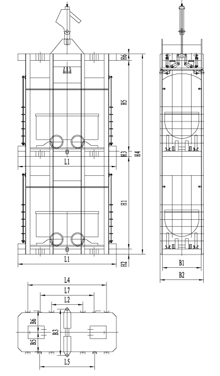 立井單繩罐籠由楔形連接裝置,抓捕器、罐體、罐內阻車器、導向裝置組成,如用于上下人,則必須設置斷繩保險器(防墜器),抓捕器根據制動繩布置形式可分為I型(對稱)抓捕和II型(對角)抓捕形式。常用單繩罐籠及配套防墜器的具體型號參數見附表。