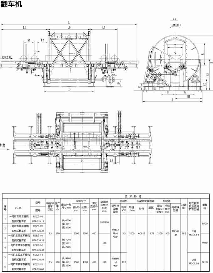 翻車機指一種用來翻卸鐵路敞車散料的大型機械設備。可將有軌車輛翻轉或傾斜使之卸料的裝卸機械,適用于運輸量大的港口和冶金、 煤炭、 熱電等工業(yè)部門。礦井下的礦車也大多用小型翻車機卸車。翻車機可以每次翻卸1-4節(jié)車皮。早期的設備只能翻卸1節(jié)車皮,現(xiàn)在***大的翻車機可以翻卸4節(jié)車皮。